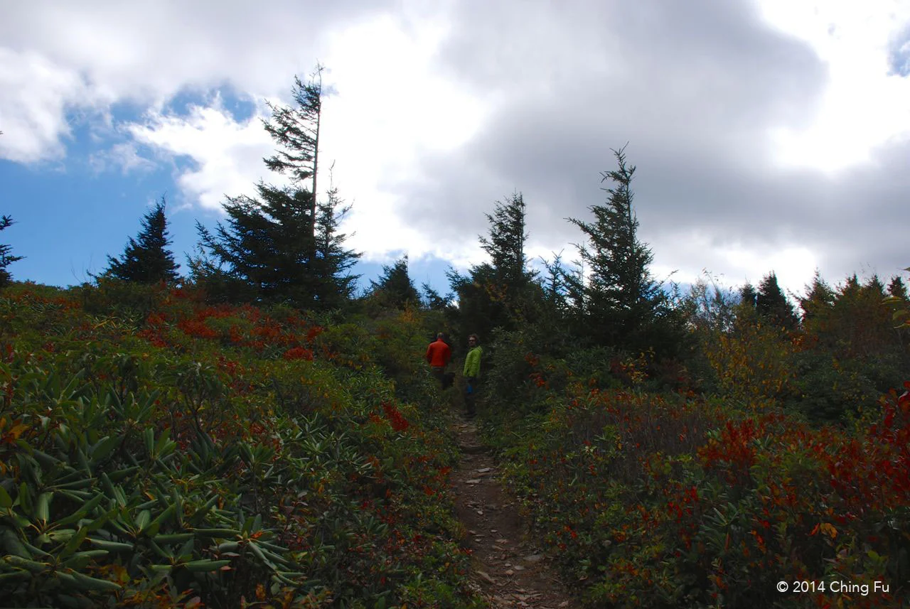 Majority of the mountain is covered by red spruce and Fraser fir trees. Sadly most of the Fraser fir trees are dying because of Balsam wooly adelgid. Acid rain has also effected the evergreens.