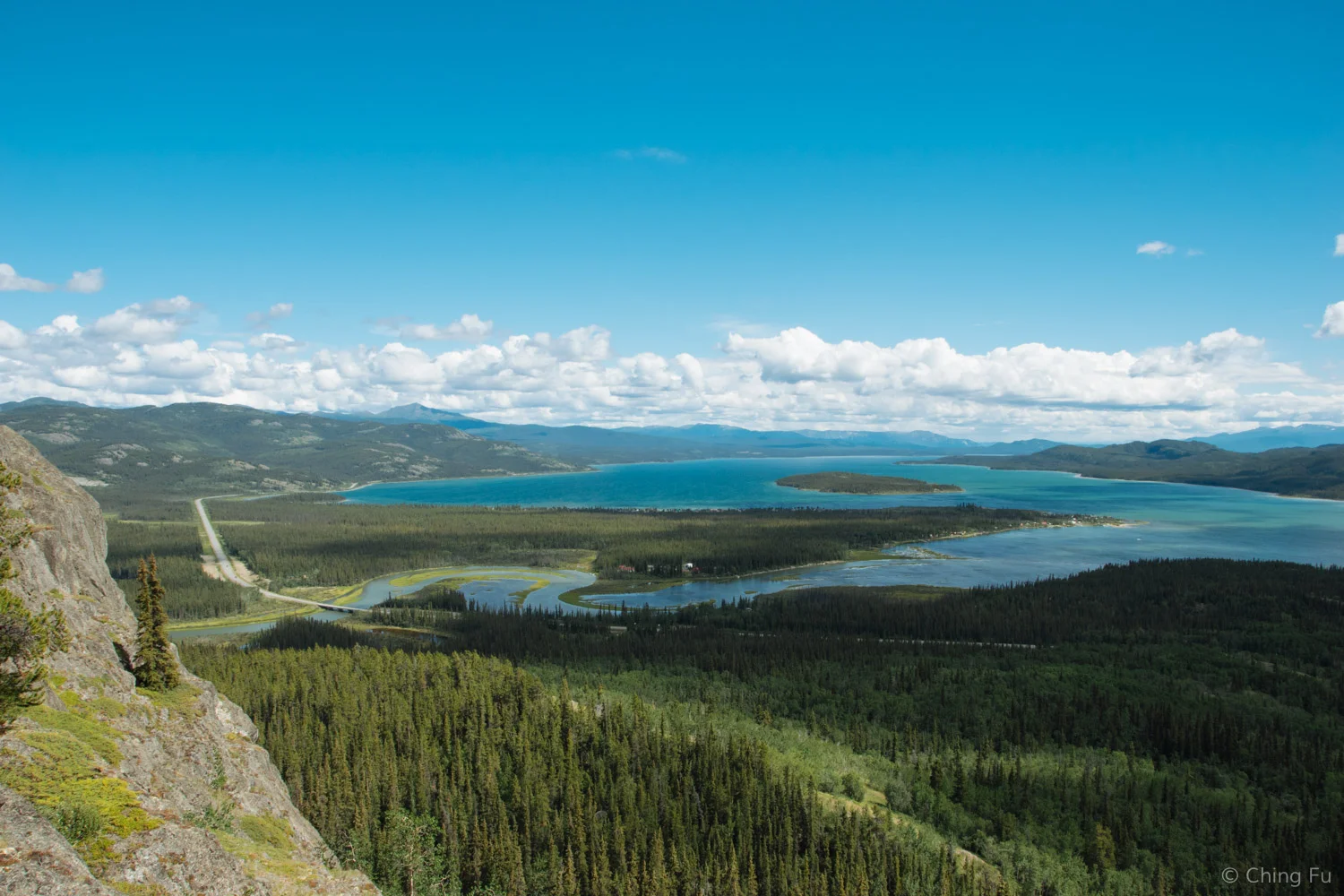 View of the Yukon River and Alaska Highway from the top of our hike.