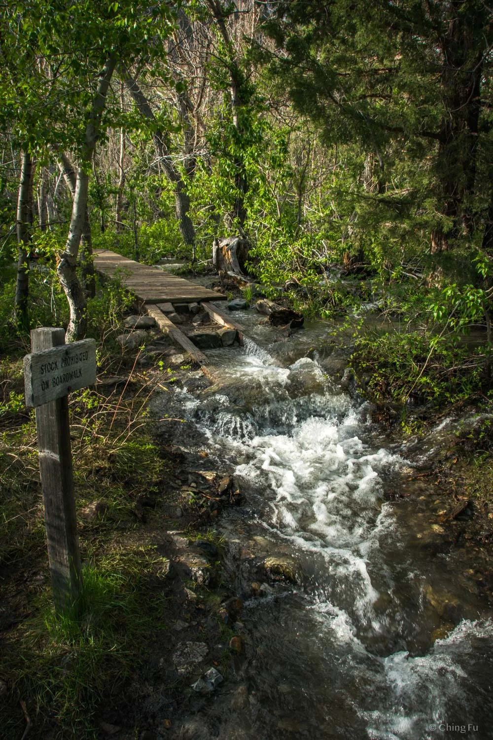Snowmelt rushing all around us at the boardwalk.