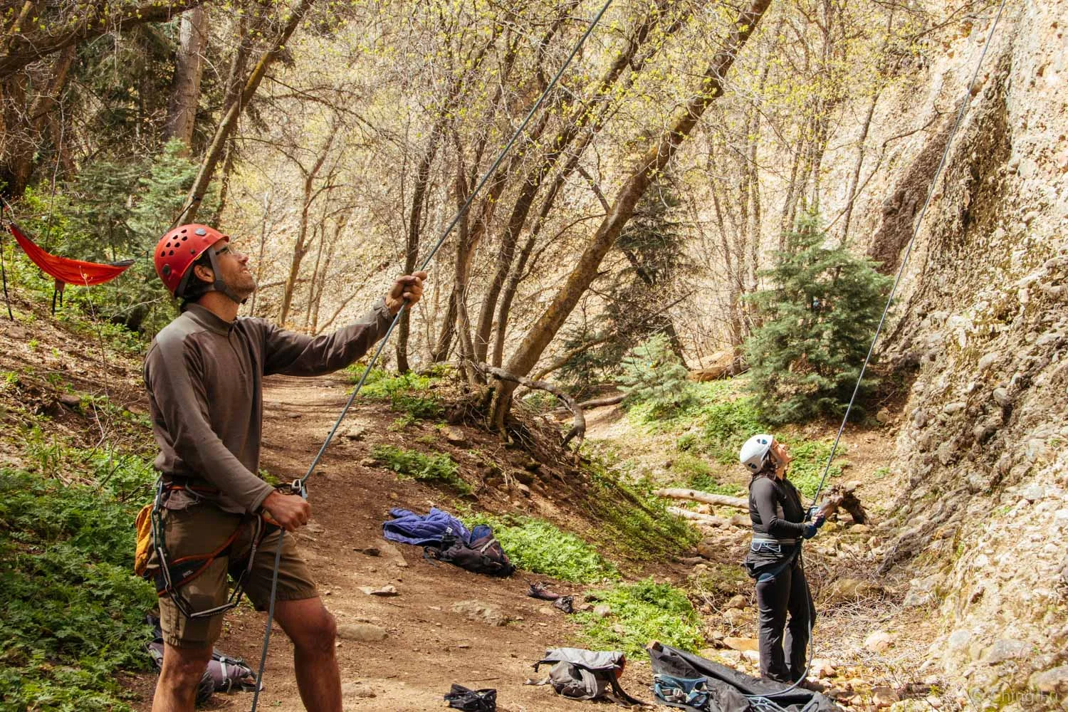 JF and Cat belaying.