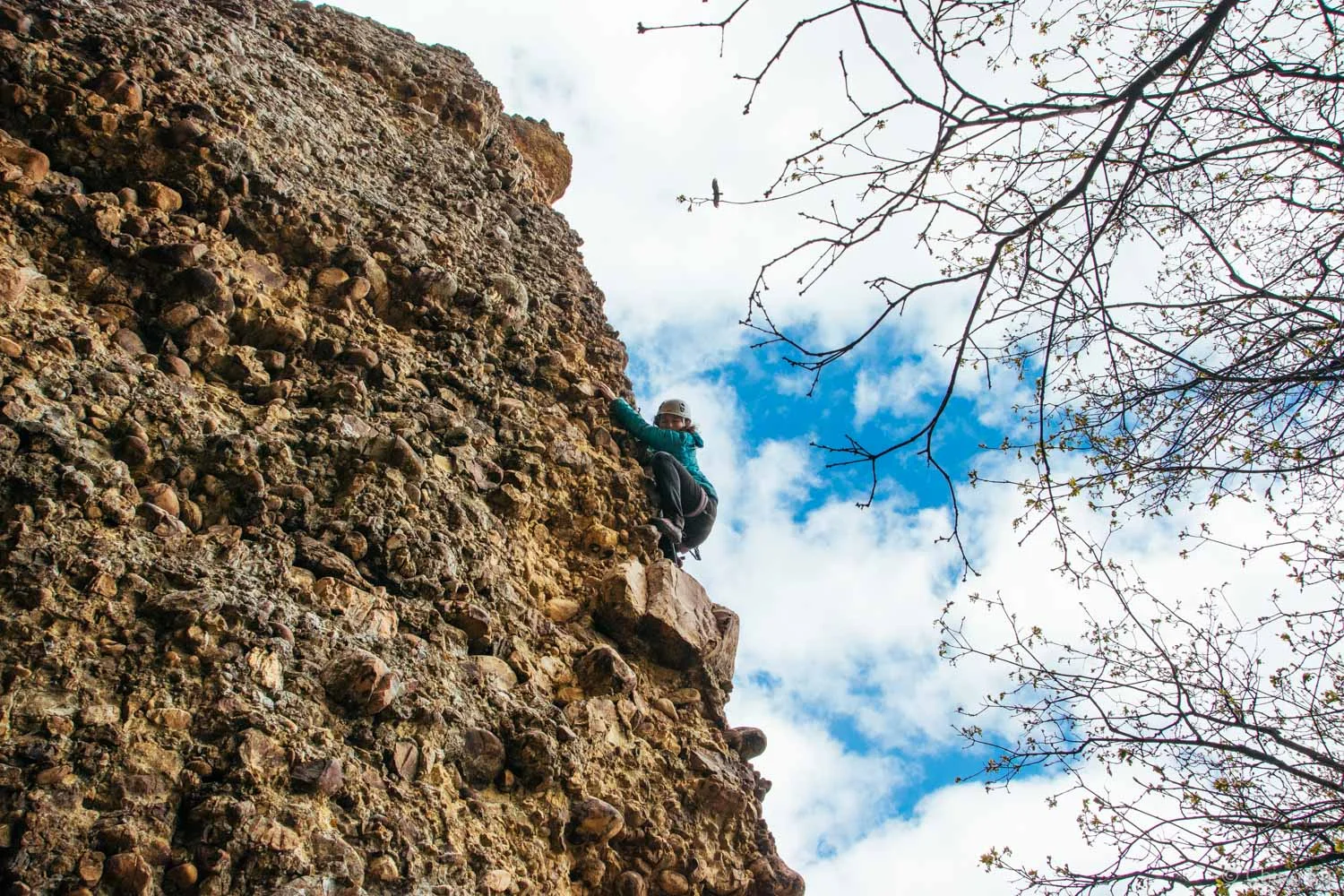 Cat and JF of Road It Up were in Maple Canyon to rock climb and had invited us to join them. Maple Canyon is a world class climbing destination famous for its unique rocks. The cliff walls are embedded with large rounded cobblestone like rocks, making them perfect hand- and footholds for climbing. Located in the Uinta National Forest, there are over 550 climbing routes here from 5.5 to 5.10+ grades/difficulties. This place is perfect for beginner climbers to those who are looking for challenges.
