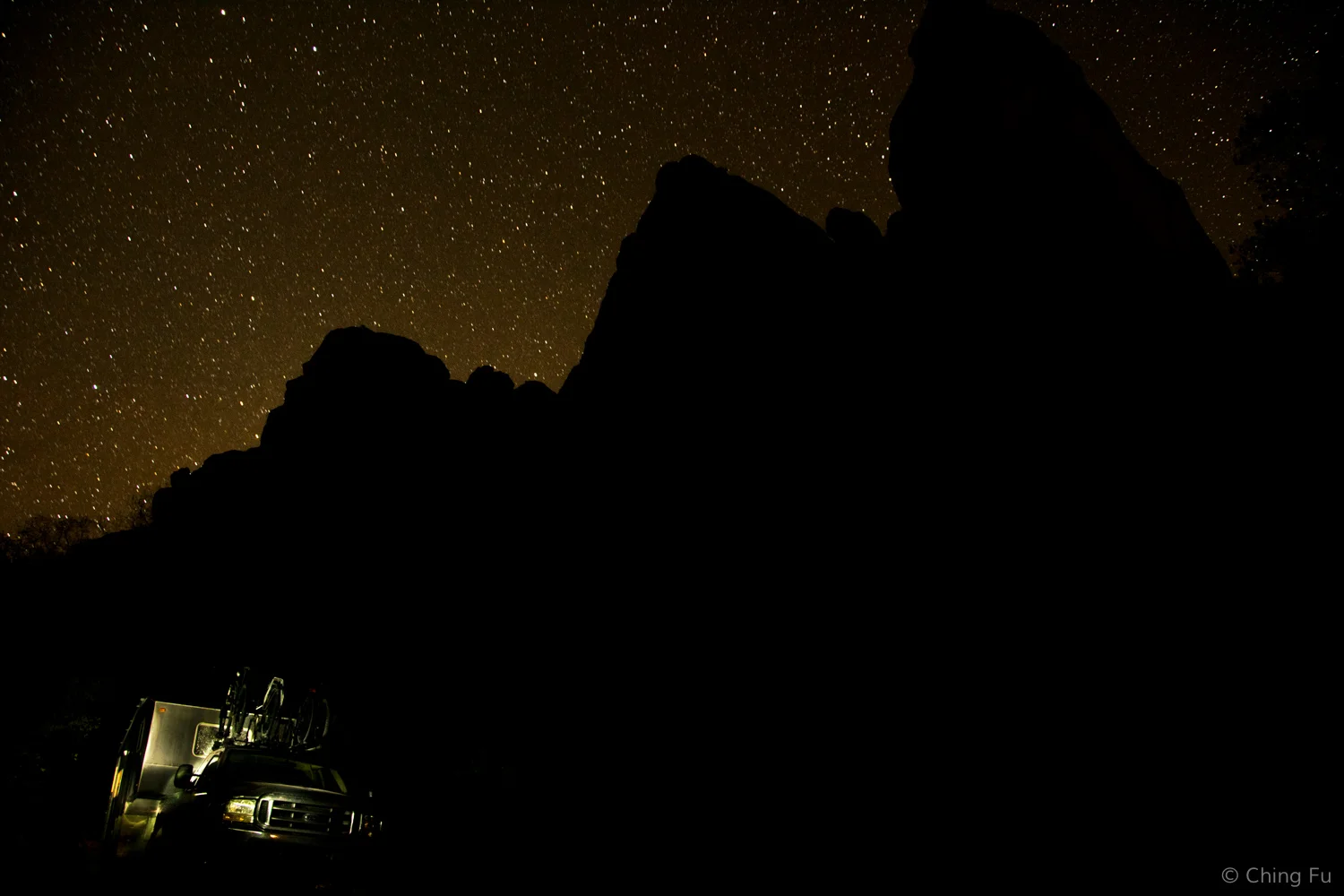 Home at Maple Canyon for the six nights we were here. There are climbing routes on the two mountains behind us. The right rock is home to Tachycardia, a three pitch route.