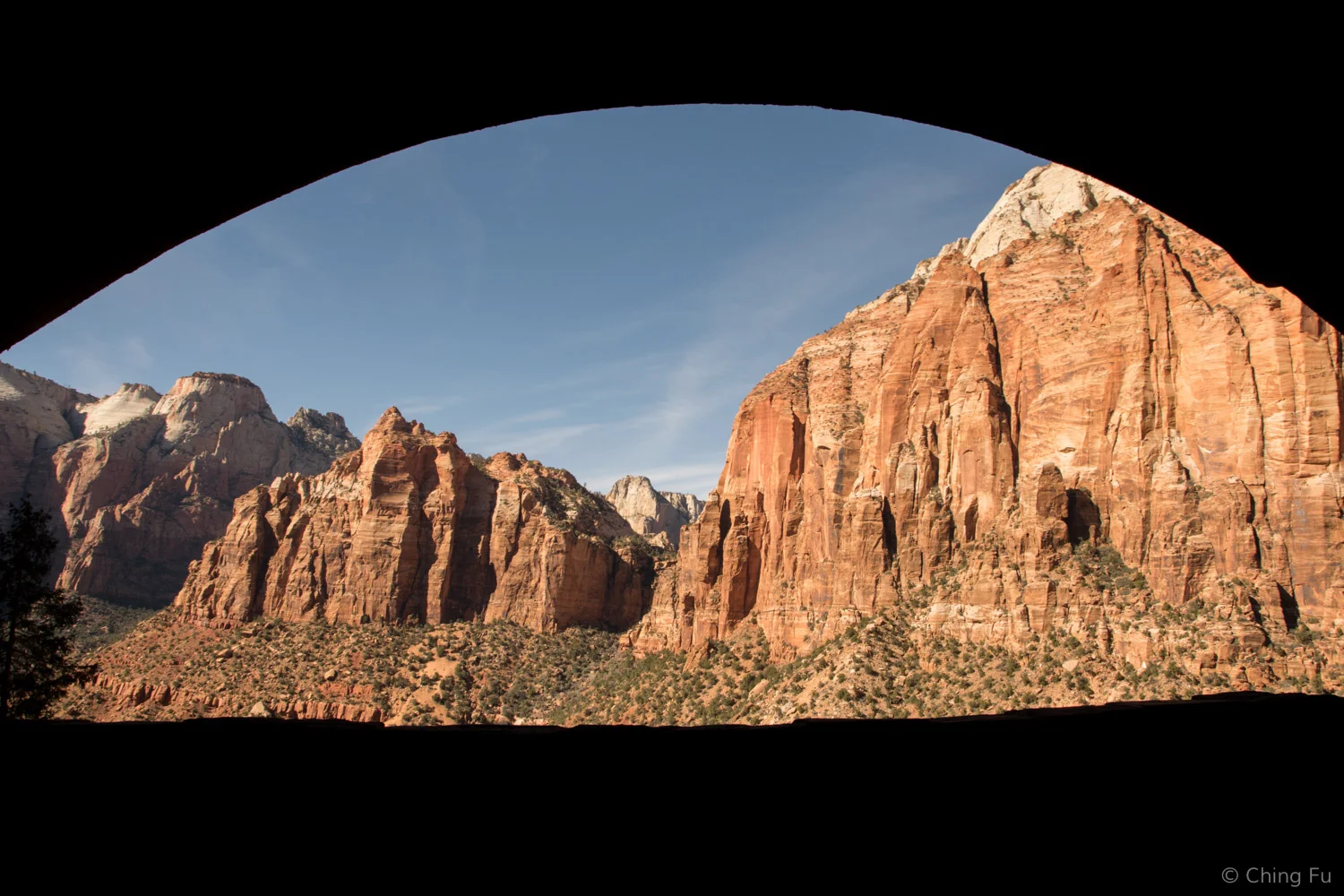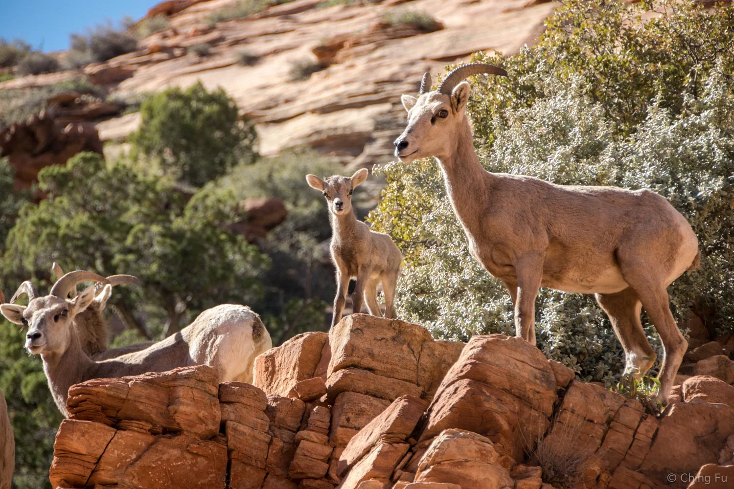 I really wanted to go through the tunnels on Zion-Mount Carmel Highway because I remembered seeing photos years ago that the tunnels have windows in them looking out into the canyon. It turned out the best part of the drive wasn’t those windows but the bighorn sheep that were perched on rocks alongside the road. It’s worth driving out that way because the scenery is beautiful and different from Zion Canyon. We turned around at Checkerboard Mesa.