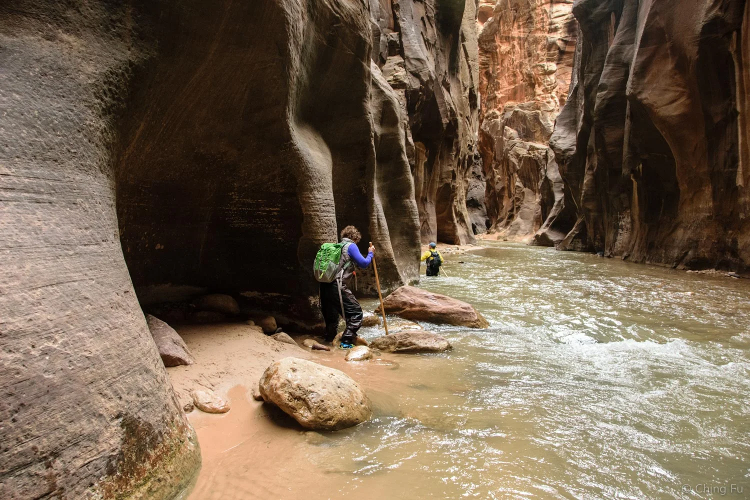 - I highly recommended bringing a walking stick (over a hiking pole) to hike the Narrows. It helps balance, stabilize, and scout out river depth and rocks. A stick is included in the Narrows package from Zion Outfitters.